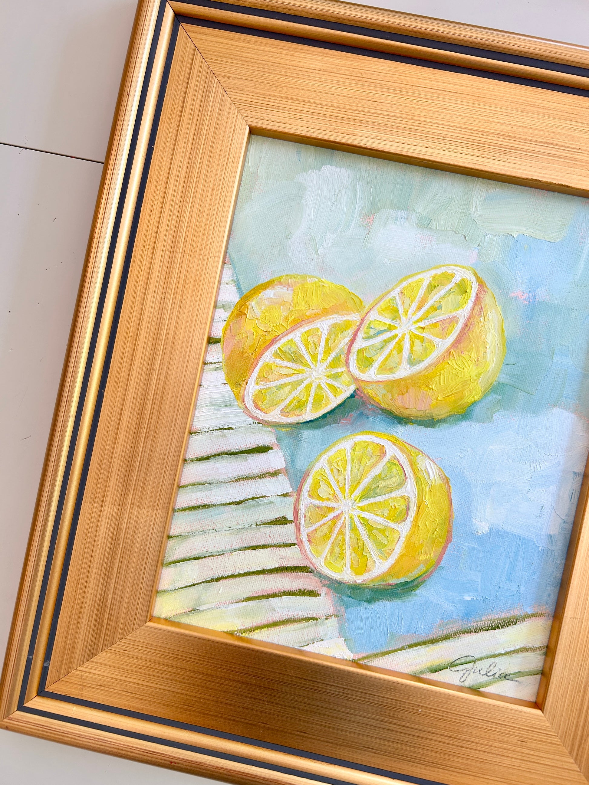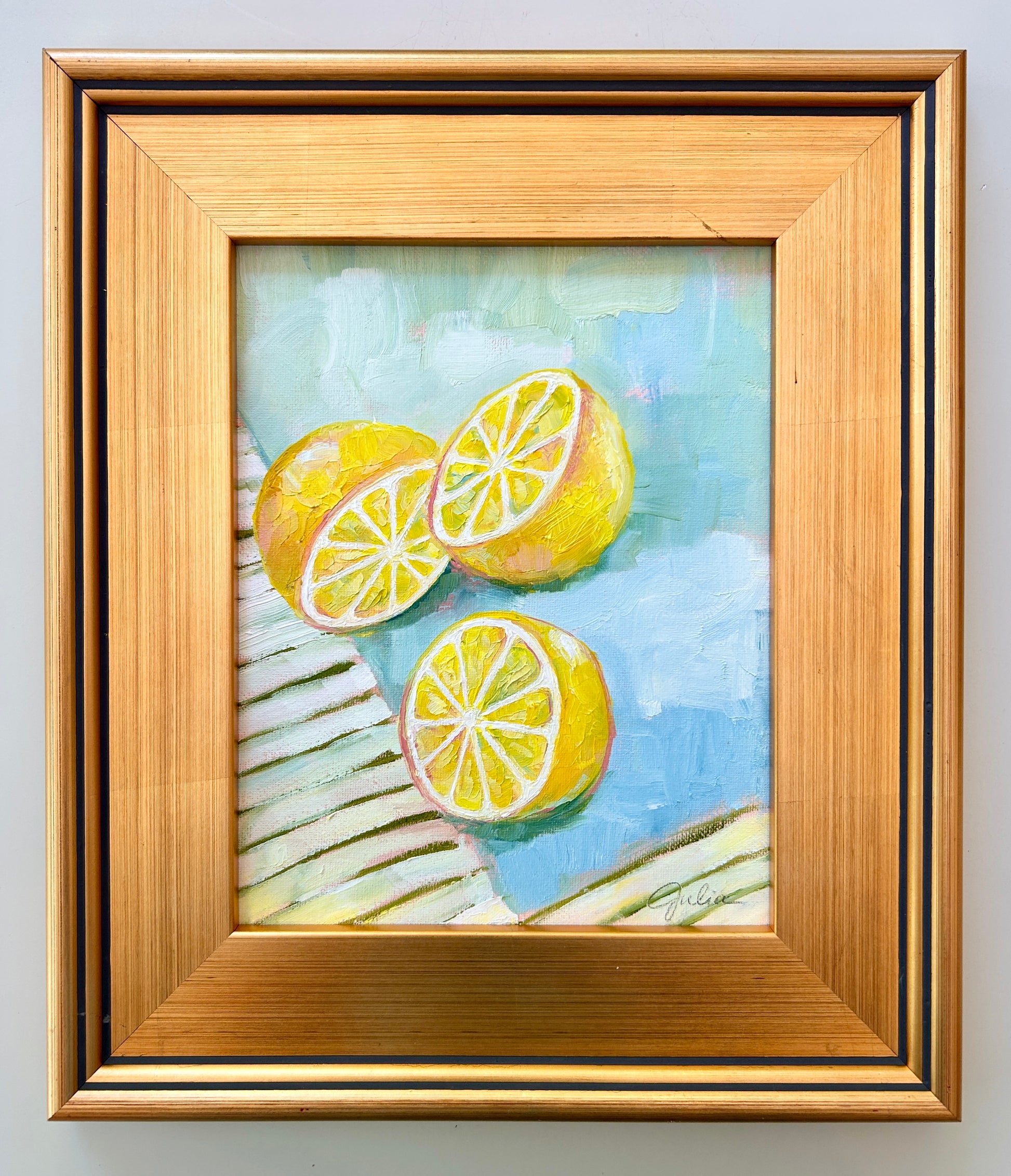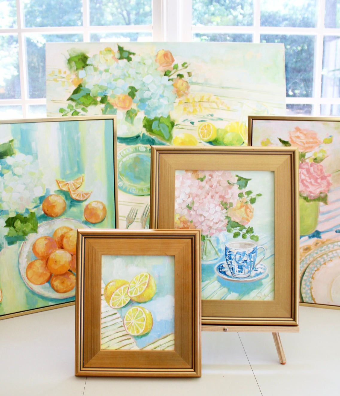Julia has a local (Charlotte, NC) framer that she uses for her pieces, and will be happy to work with you to select the best frame for your painting. The lead time is approximately 4-6 weeks. She also offers virtual consultations if you would like to work with your own framer.