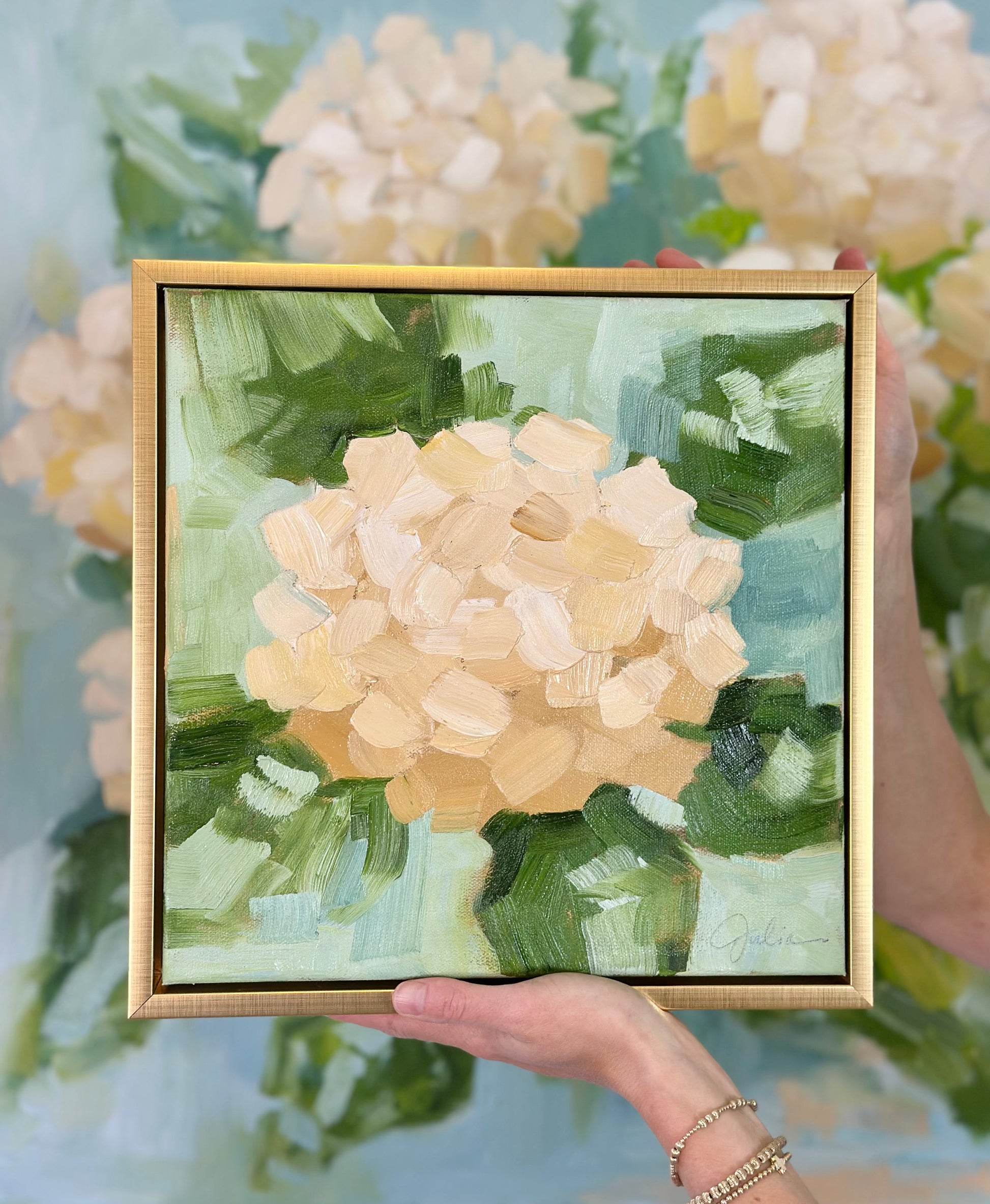 Julia has a local (Charlotte, NC) framer that she uses for her pieces, and will be happy to work with you to select the best frame for your painting. The lead time is approximately 4-6 weeks. She also offers virtual consultations if you would like to work with your own framer.