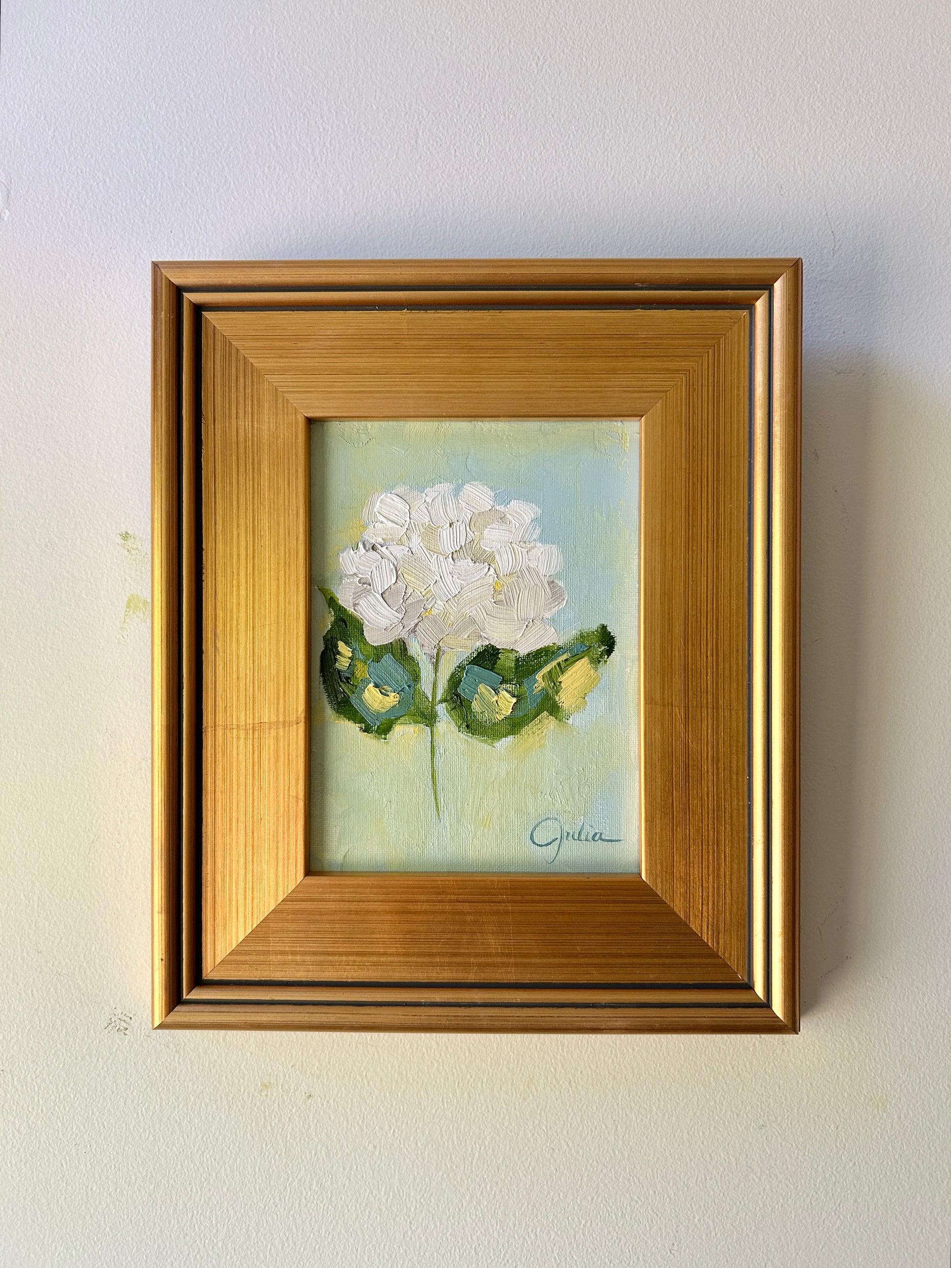Julia has a local (Charlotte, NC) framer that she uses for her pieces, and will be happy to work with you to select the best frame for your painting. The lead time is approximately 4-6 weeks. She also offers virtual consultations if you would like to work with your own framer.