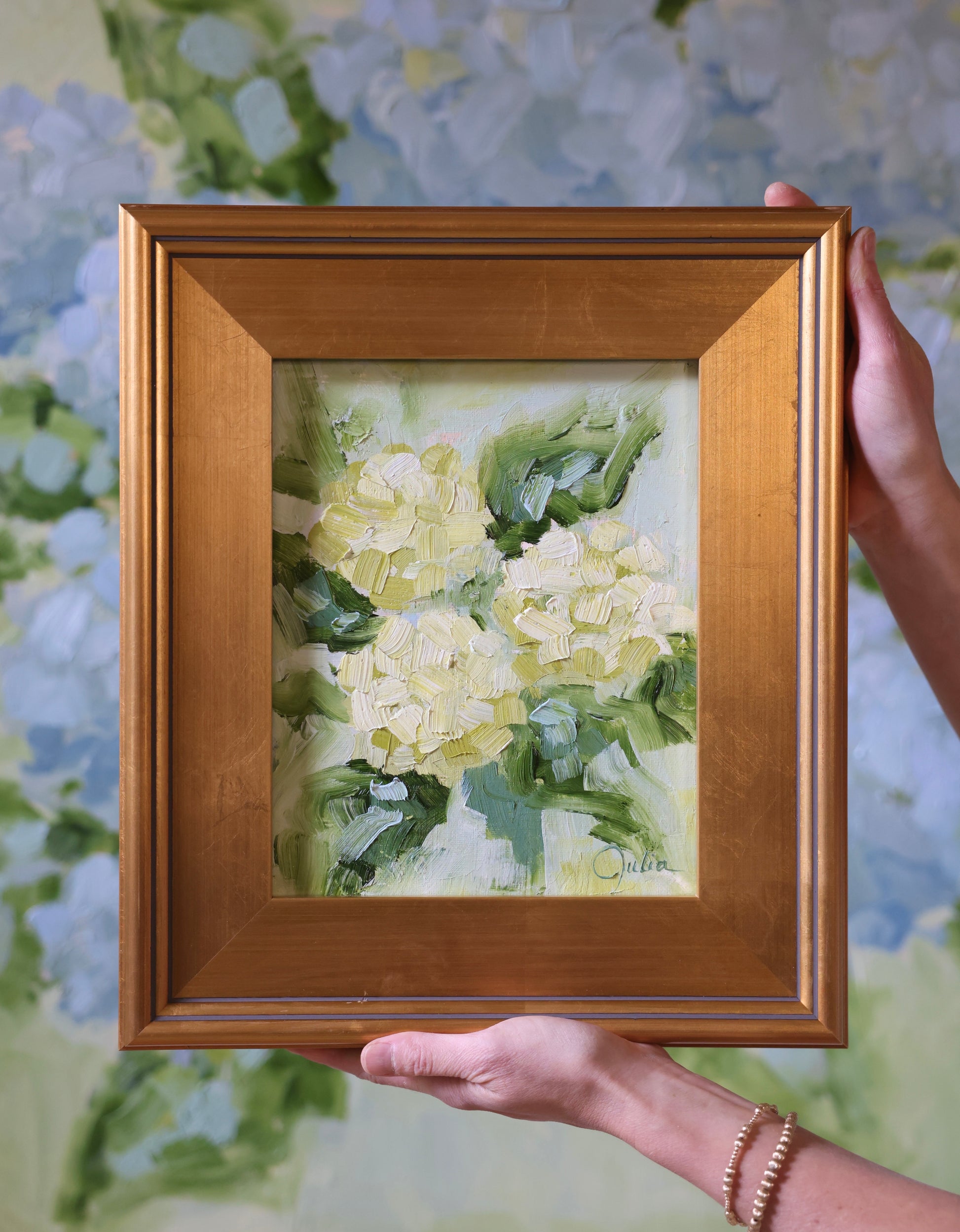 Julia has a local (Charlotte, NC) framer that she uses for her pieces, and will be happy to work with you to select the best frame for your painting. The lead time is approximately 4-6 weeks. She also offers virtual consultations if you would like to work with your own framer.