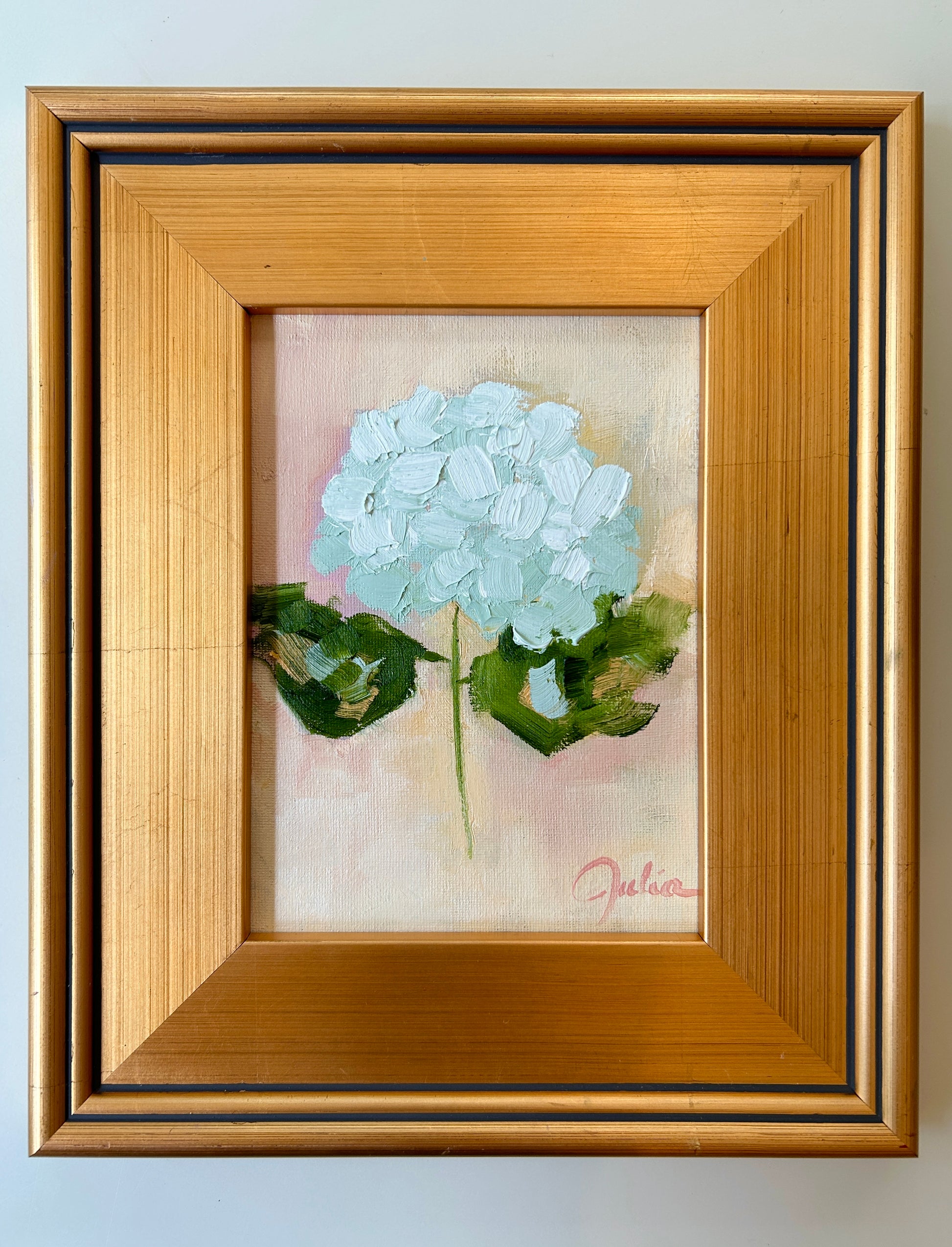 Julia has a local (Charlotte, NC) framer that she uses for her pieces, and will be happy to work with you to select the best frame for your painting. The lead time is approximately 4-6 weeks. She also offers virtual consultations if you would like to work with your own framer.