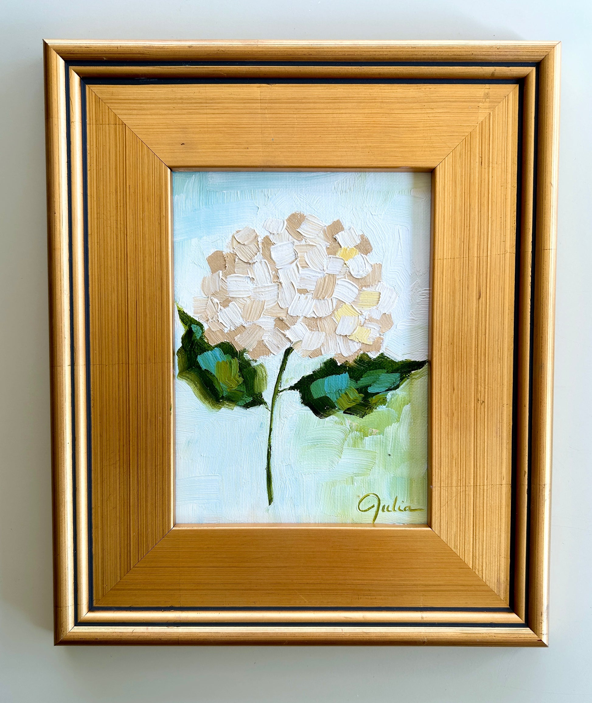 Julia has a local (Charlotte, NC) framer that she uses for her pieces, and will be happy to work with you to select the best frame for your painting. The lead time is approximately 4-6 weeks. She also offers virtual consultations if you would like to work with your own framer.